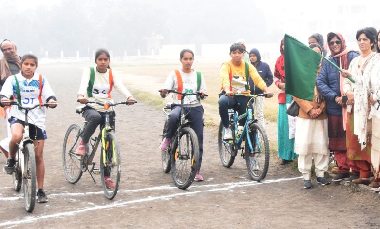 भिवानी, (ब्यूरो): डीसी महावीर कौशिक के मार्गदर्शन में स्थानीय भीम खेल परिसर में शुक्रवार को महिला एवं बाल विकास विभाग के तहत जिला स्तरीय महिला खेलकूद प्रतियोगिता आयोजित हुई। विभाग की कार्यक्रम अधिकारी वैशाली ने साइकिल रेस प्रतियोगिता को हरी झंडी दिखाई। विभाग द्वारा विजेता महिलाओं को सम्मान स्वरूप पुरस्कार देकर सम्मानित किया।